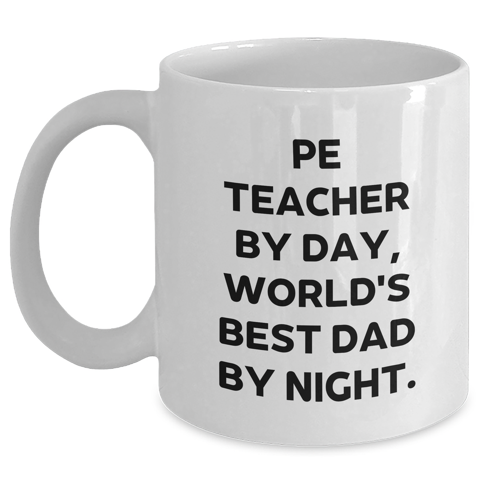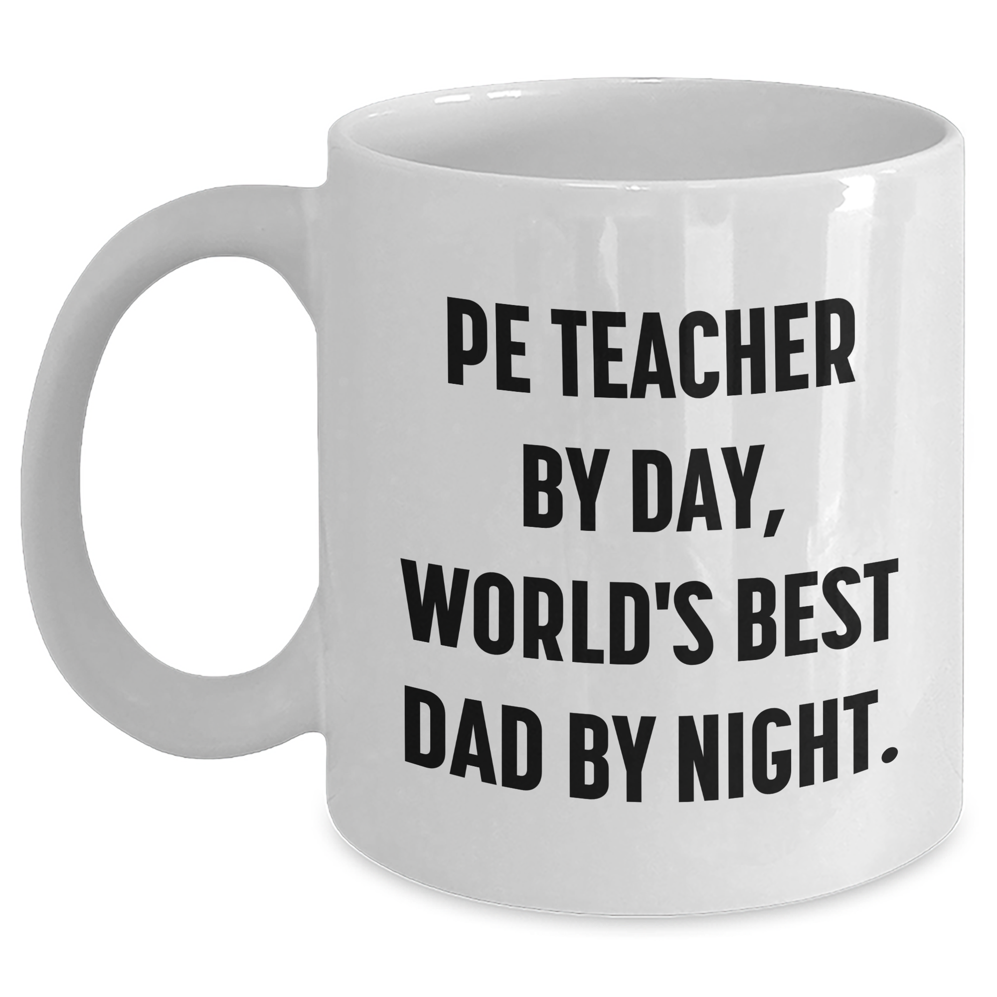 Funny PE Teacher Gifts, White Coffee Mug for Mother's Day - 'Pe Teacher By Day, World's Best Dad By Night.', Gifts from Men to PE Teacher, Unique Gift Ideas Select your color White Select your size 11oz 15oz Decrease quantity for Funny PE Teacher Gifts, White Coffee Mug for Mother's Day - 'Pe Teacher By Day, World's Best Dad By Night.', Gifts from Men to PE Teacher, Unique Gift Ideas Quantity Increase quantity Show product Select color Removing from cart... Adding... Out of stock Unavailable Add to cart Removing from cart... Adding... Already in cart Select another option From $14.99 USD Unit price / per