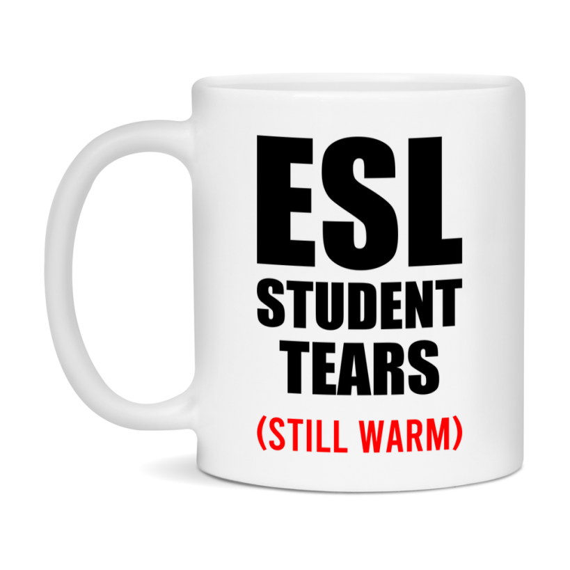 Esl Student Tears Mug, Funny Gift For Esl Teacher, 11Oz Or 15Oz White Ceramic Mug Select your size 11oz 15oz Select your color White White/Red White/Pink White/Orange White/Light Green White/Light Blue White/Midnight Blue White/Black Decrease quantity for Esl Student Tears Mug, Funny Gift For Esl Teacher, 11Oz Or 15Oz White Ceramic Mug Quantity Increase quantity Show product Select size Removing from cart... Adding... Out of stock Unavailable Add to cart Removing from cart... Adding... Already in cart Select another option From $16.95 USD Unit price / per