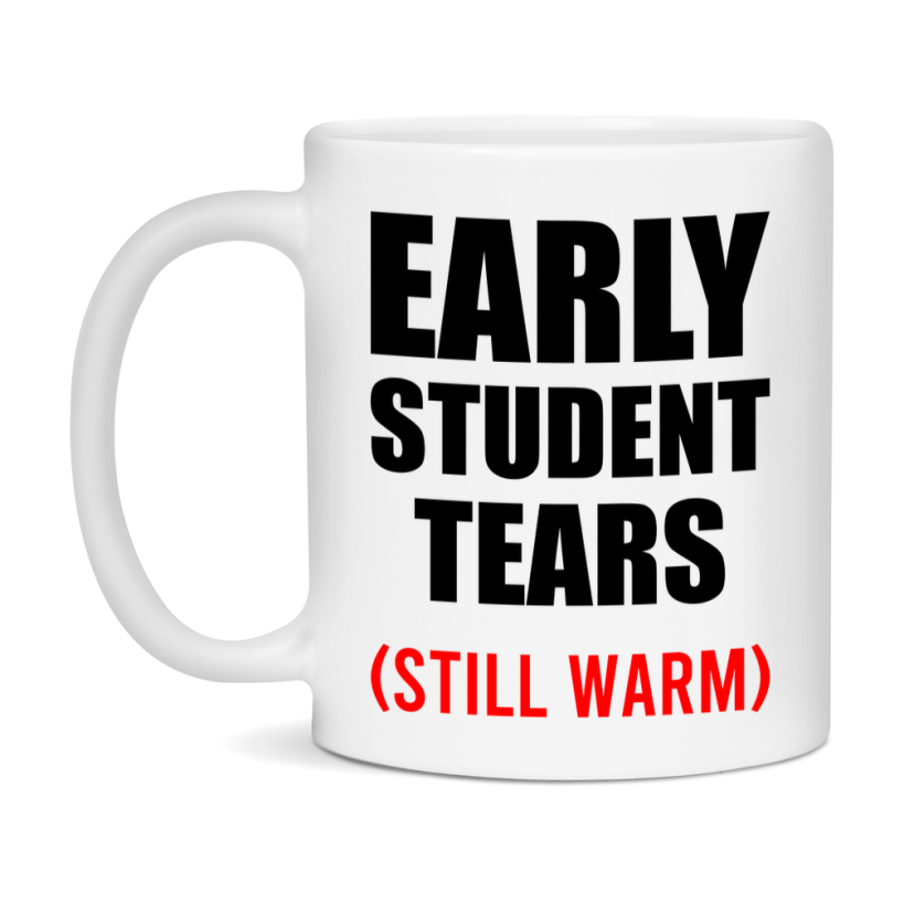 Early Student Tears Mug, Funny Gift For Early Teacher, 11Oz Or 15Oz White Ceramic Mug Select your size 11oz 15oz Select your color White White/Red White/Pink White/Orange White/Light Green White/Light Blue White/Midnight Blue White/Black Decrease quantity for Early Student Tears Mug, Funny Gift For Early Teacher, 11Oz Or 15Oz White Ceramic Mug Quantity Increase quantity Show product Select size Removing from cart... Adding... Out of stock Unavailable Add to cart Removing from cart... Adding... Already in cart Select another option From $16.95 USD Unit price / per
