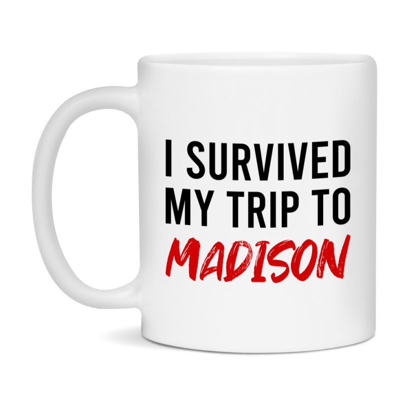 -7% OFF Funny Travel Mug – I Survived My Trip to Madison, 11oz or 15oz White Ceramic Coffee Mug, Novelty Travel Gift Select your size 11oz 15oz Select your color White White/Red White/Pink White/Orange White/Light Green White/Light Blue White/Midnight Blue White/Black Decrease quantity for Funny Travel Mug – I Survived My Trip to Madison, 11oz or 15oz White Ceramic Coffee Mug, Novelty Travel Gift Quantity Increase quantity Show product Select size Removing from cart... Adding... Out of stock Unavailable Add to cart Removing from cart... Adding... Already in cart Select another option Sale price $12.00 USD $12.95 USD Unit price / per