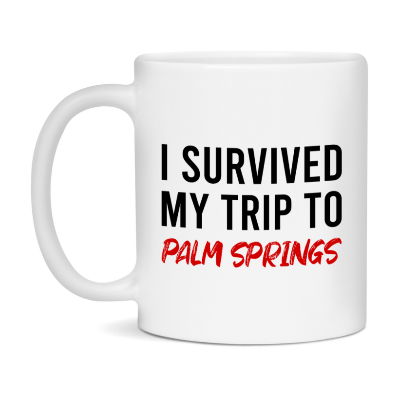 -7% OFF Funny Travel Mug – I Survived My Trip to Palm Springs, 11oz or 15oz White Ceramic Coffee Mug, Novelty Travel Gift Select your size 11oz 15oz Select your color White White/Red White/Pink White/Orange White/Light Green White/Light Blue White/Midnight Blue White/Black Decrease quantity for Funny Travel Mug – I Survived My Trip to Palm Springs, 11oz or 15oz White Ceramic Coffee Mug, Novelty Travel Gift Quantity Increase quantity Show product Select size Removing from cart... Adding... Out of stock Unavailable Add to cart Removing from cart... Adding... Already in cart Select another option From $12.00 USD Unit price / per