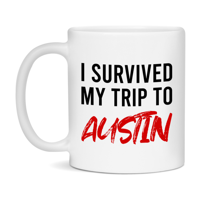 -7% OFF Funny Travel Mug – I Survived My Trip to Austin, 11oz or 15oz White Ceramic Coffee Mug, Novelty Travel Gift Select your size 11oz 15oz Select your color White White/Red White/Pink White/Orange White/Light Green White/Light Blue White/Midnight Blue White/Black Decrease quantity for Funny Travel Mug – I Survived My Trip to Austin, 11oz or 15oz White Ceramic Coffee Mug, Novelty Travel Gift Quantity Increase quantity Show product Select size Removing from cart... Adding... Out of stock Unavailable Add to cart Removing from cart... Adding... Already in cart Select another option Sale price $12.00 USD $12.95 USD Unit price / per