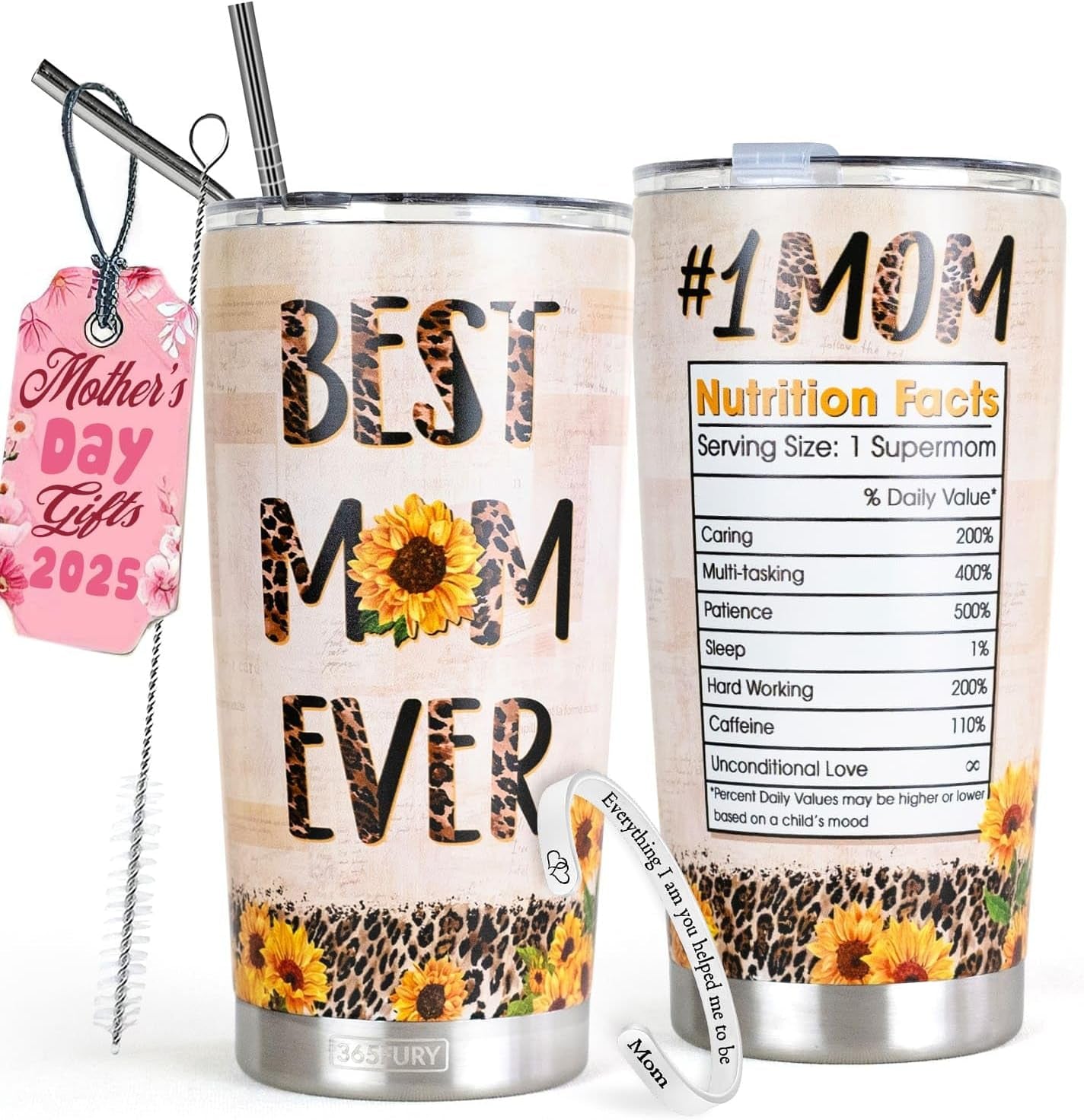 - [4-in-1 Mothersday Gift for Mom] - This mom tumbler gift set is definitely worth buying for any occasion Mothers Day Gifts from Daughter Son, Mom Birthday Gifts from Daughter, Birthday Gift for Mom, Happy Birthday Mom, Moms Birthday Gift Ideas, Birthday Gifts for Mom from Daughter, Mom Gifts for Birthday. It includes a Best Mom Ever mug, a high-quality engraved bangle, a BPA-free straw combo, and one replacement lid. Each item is individually gift boxed and is sure to bring a smile.