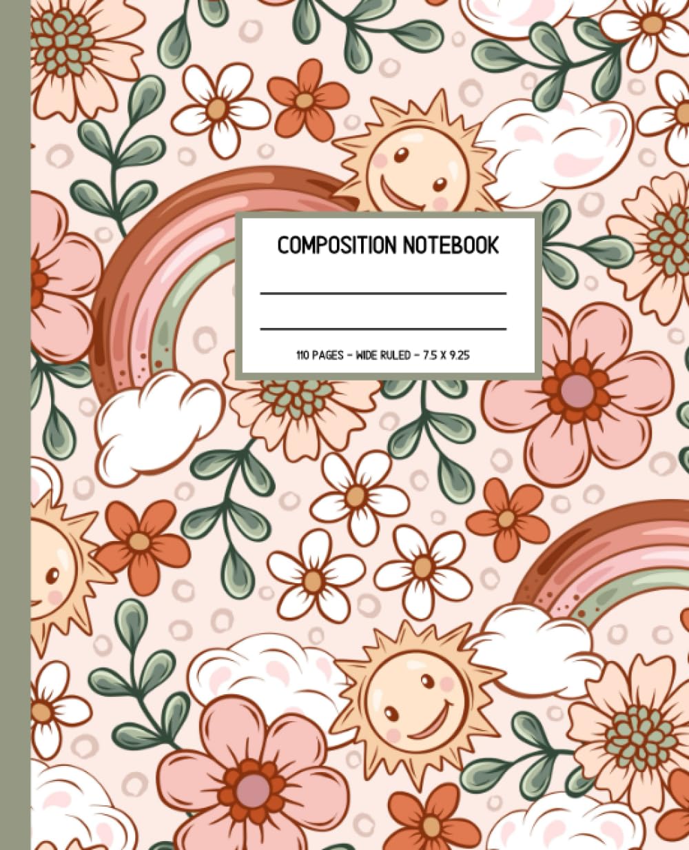 Composition Notebook: Boho Rainbow Floral Design, Wide Ruled Paper Journal, for Girls, Boys, Kids, Students, Teens, for Back to School, Home and College