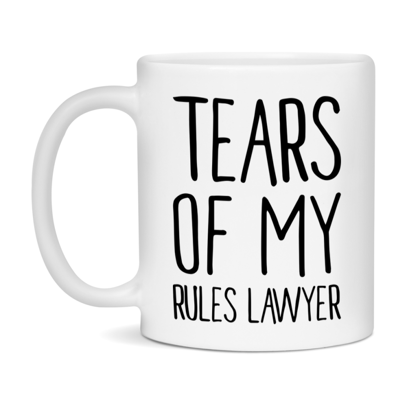 Fuel your next campaign with the DnD Dragon Masters Tears of My RULES LAWYER Mug. This ceramic coffee mug is available in 11oz or 15oz sizes and designed for Dungeons and Dragons players and RPG fans. Dishwasher and microwave safe, it’s the perfect game night mug or gift for any tabletop gamer.