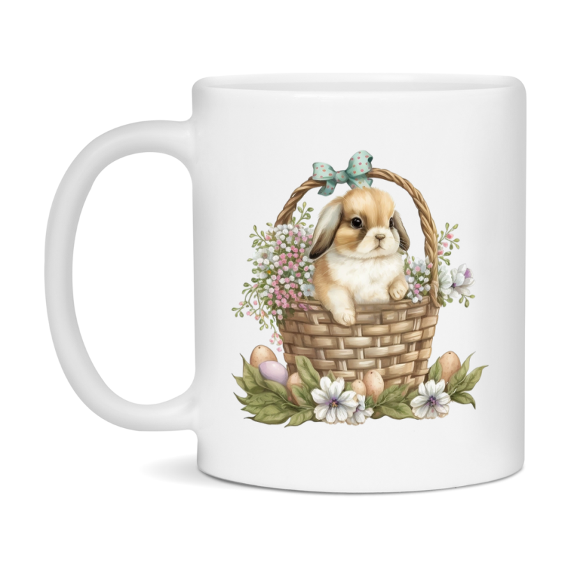 Easter Bunny Coffee Mug, Cute Bunny With Basket Easter Gift, Double-Sided 11Oz Or 15Oz White Ceramic Cup