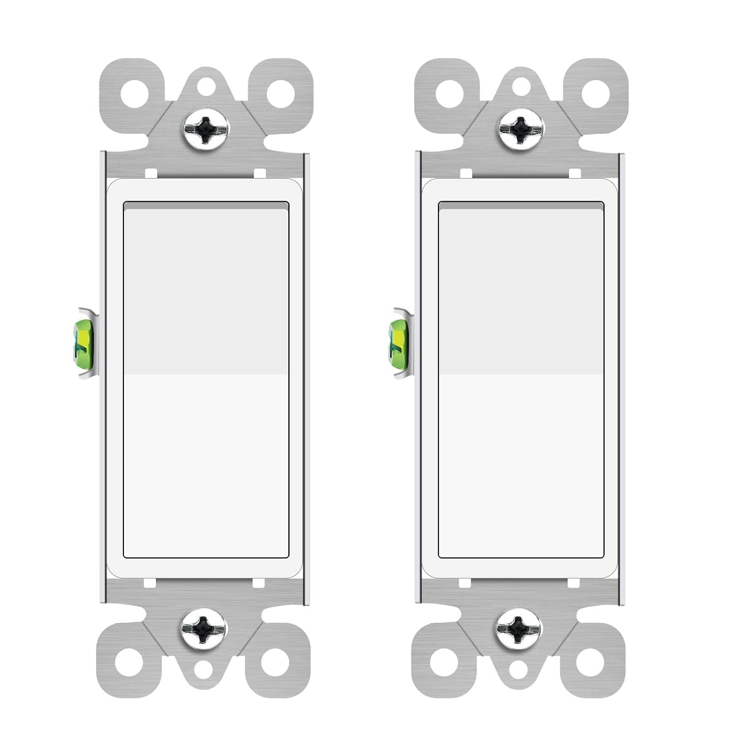 - ✅【Sleek and Modern】Featuring a white decorator rocker design with smooth and quiet paddles, this switch is both elegant and modern. It's perfect for those who want a simple and stylish switch that's easy to use. With easy-to-control paddles, you'll never struggle to turn your lights on or off again. Plus, its slim design allows for multiple switches to be installed in the same wall plate.